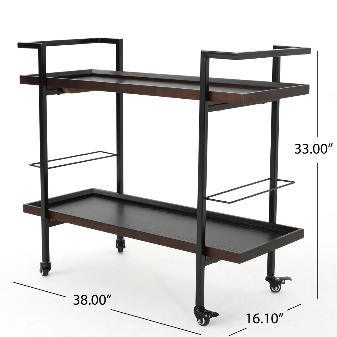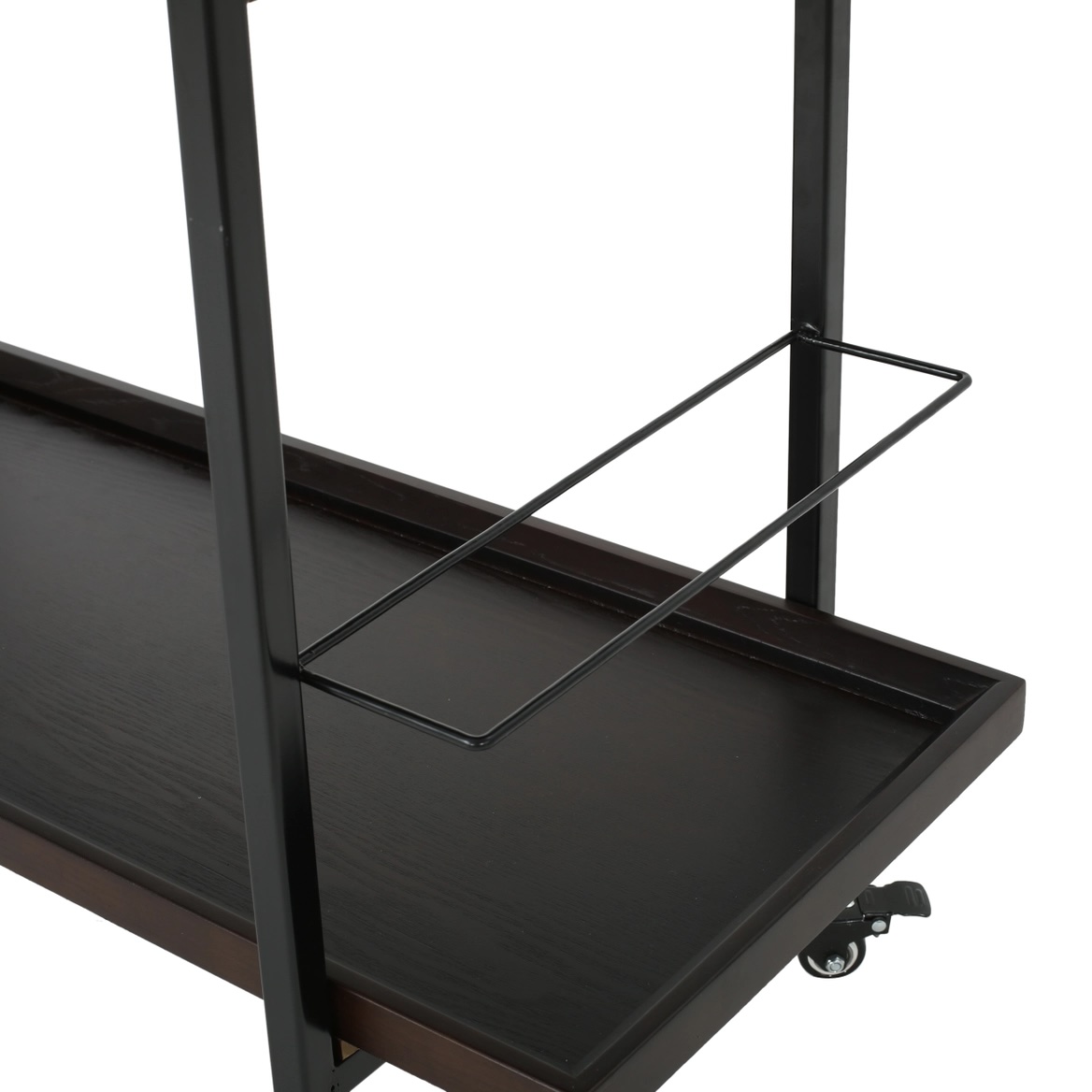 Bring style and function together with the Industrial Bar Cart with Wood Shelves and Locking Casters in Walnut Finish, designed to elevate your entertaining space while offering practical storage. The sturdy black metal frame paired with warm walnut-colored wood-look shelves strikes the perfect balance between modern industrial edge and inviting charm.
